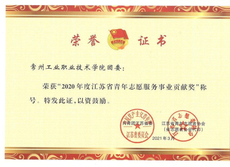 近日,共青團江蘇省委、江蘇省青(qīng)年誌願者協會聯合下發《關於(yú)公布2020年度全省(shěng)青年誌願者行動評(píng)選結果的通知》(團蘇委聯〔2021〕9號),我(wǒ)校團(tuán)委榮獲“2020年度江蘇省青年誌願(yuàn)服務事業(yè)貢獻獎”。