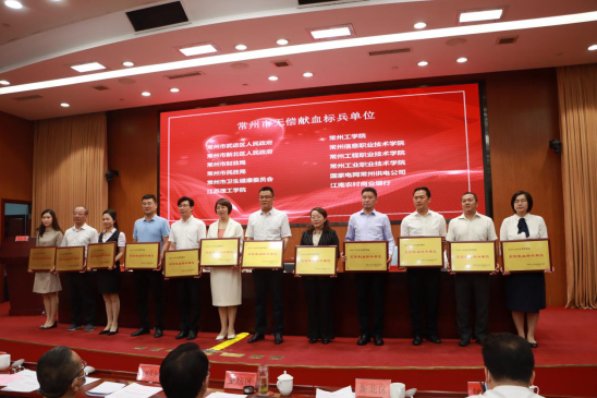 ?近日,常州市無償(cháng)獻血(xuè)工作會議(yì)在市(shì)行(háng)政中心群賢堂召開。市公民無償獻血領導小組組長、副市長陳正春(chūn),市衛生健康委、市紅(hóng)十字會等(děng)相關單位領導出席會議。學校黨委委員、組(zǔ)織部部長蔣小燕,團委書記鄧曉斌應邀參加會議。蔣小燕作為受表(biǎo)彰單位代表作題為《用(yòng)愛 助社會一(yī)臂之力》的交流(liú)發言。