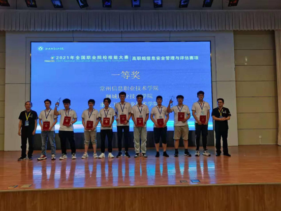 6月19日至20日,2021年全國職業院(yuàn)校技能大賽(高職組)信息安全管理與(yǔ)評估賽項在山東聊城職業技術學院成功舉辦。由我校網絡空(kōng)間(jiān)安全學院李建新技能大師工作室指導(dǎo),紅客工(gōng)作室成員張智源、王睿、王昊(hào)同(tóng)學組成(chéng)的代(dài)表隊經過省賽(sài)、選拔賽的重重考驗,代表江蘇省(shěng)以團體第一名的好成績,獲得該賽項一等獎。