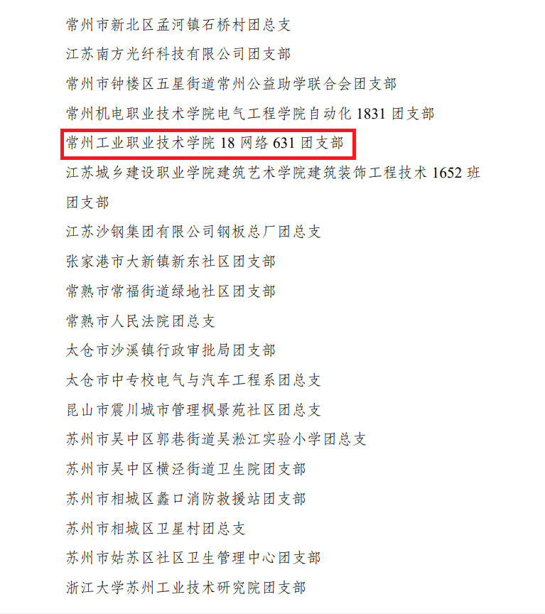 常州(zhōu)工業學院:我校榮獲“江蘇(sū)省五四紅旗團支部”等兩(liǎng)項榮譽