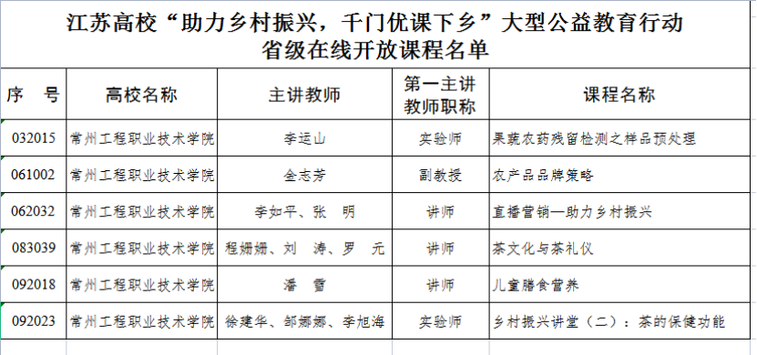 常州工程學院(yuàn):我校6門課程入選江蘇高校“助力鄉村振興,千門(mén)優課下鄉” 大(dà)型公益教育行動省(shěng)級在線開放課程