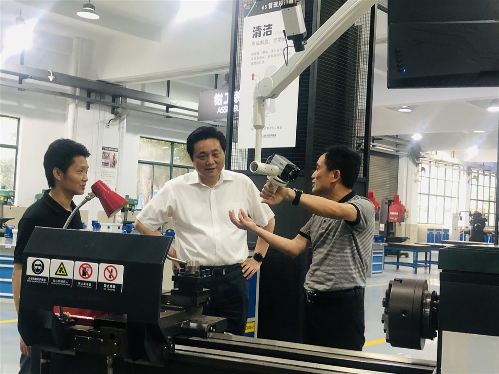 韓九雲首先(xiān)視察了利用原有設施(shī)設備基礎進行改造(zào)提升的機械加(jiā)工技術(shù)、數控(kòng)技術、模具技術等傳統實訓基地,韓部長表(biǎo)示通過管委會的精心統(tǒng)籌規(guī)劃,工(gōng)業(yè)中(zhōng)心的精細安排實施,有效提升了基地的實訓條(tiáo)件,並引入德國精益化管理體係,大大提升了傳統基地的管理水(shuǐ)平,最大限度實(shí)現了資源(yuán)可持續利用,同時根據傳統基地(dì)的教學痛點對設備進行了聯(lián)網管理、自主設計開(kāi)發教學視教係統,讓老基地跟上了新(xīn)時代,讓傳統技術教學有了科(kē)技新手段。