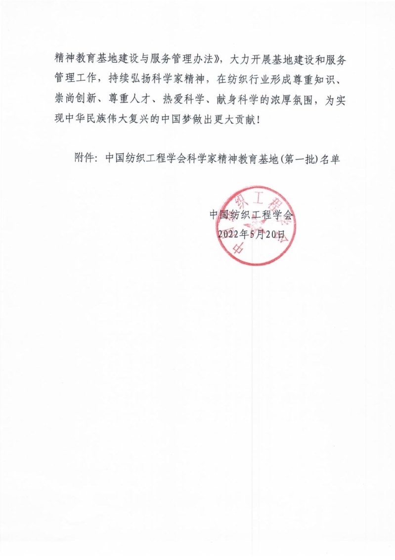 為深入貫徹落實中央人才工作會議精神,推(tuī)動習(xí)近(jìn)平新時代中國特(tè)色(sè)社會主義思想在科技界轉化深化。按照《關於開展“科(kē)學家精神教育基地”建設與(yǔ)服務管理工作的通知(zhī)》(中紡學〔2022〕8號)文件精神,常(cháng)州紡院組織了中國紡織工程(chéng)學會科學家精神教(jiāo)育(yù)基(jī)地的申報工(gōng)作,並成功獲得立項建設,第一批(pī)立項建設單位共4家,常州紡織服裝職業技術學院為獲得立項建設的唯一(yī)高職院(yuàn)。