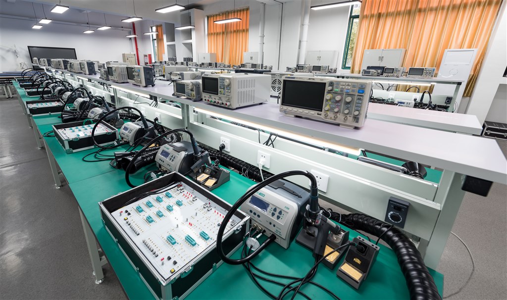 電子(zǐ)信息技術(能源電子)實訓基地主要分為(wéi)現代電子裝聯(lián)、高可靠性焊接、電子電(diàn)路裝(zhuāng)調、電子產品測試與維修、集成電(diàn)路虛擬(nǐ)仿(fǎng)真、電子產品創新與設計等11個實訓區。基(jī)地引入集成電路開發與測試、PCB快速製板、新能源汽車電子焊接機器(qì)人等先進設備,以典型新能(néng)源電子(zǐ)產品為教學載體,涵蓋集成電路開發與測試、電子產品電路(lù)板設(shè)計與製作、電子產品組裝與生產工藝、電子產品軟件開發與調試、電子產品測試與維修等知識點和技能,全麵培養電子信息類專業學生的(de)職業素養和綜合能力(lì)。