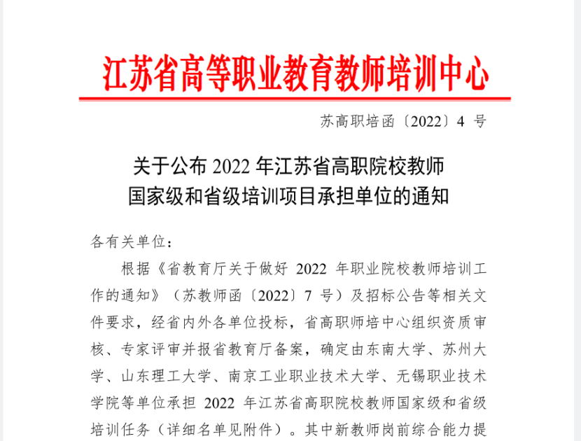 常(cháng)州工程職業技術學院獲批2022年江蘇省中、高職院校教師培訓省培項目(mù)