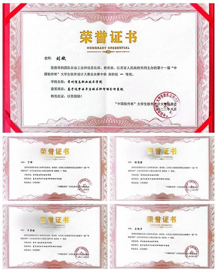 8月13日至17日,第十一屆“中國軟件杯”大學(xué)生軟(ruǎn)件設計大賽全國總決賽在南京(jīng)航空航(háng)天大學舉行。通過第二(èr)輪演示評審(shěn)和總決賽答辯,常州信息職業(yè)技術學院的軟件與大數據學院參賽團隊共斬獲全國一等獎1項、二等獎(jiǎng)1項、三等獎1項。劉斌老師指導的呂楊平、丁帥、程思源、於(yú)魯健團隊獲得全國(guó)總決賽一等(děng)獎;賈鑫老師指導的王浩、周翔宇團隊獲得全國總決賽二等獎;張航海老(lǎo)師指導周磊、杜浩男團(tuán)隊獲得全(quán)國總(zǒng)決賽三等獎,學校獲“最佳學校組織獎”。