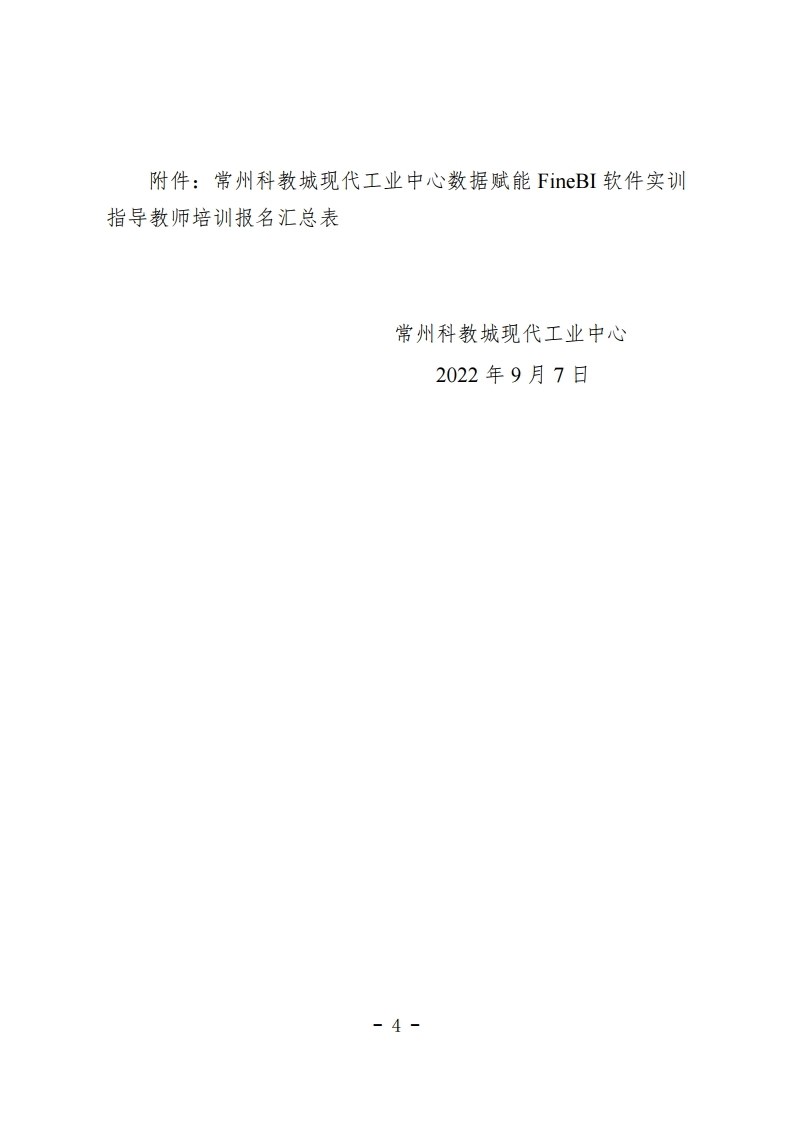 常州科教城現代工業中心關於開展數據賦能FineBI軟件指導教師培訓工作的通知