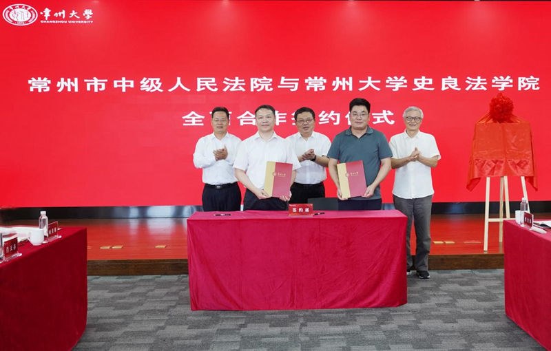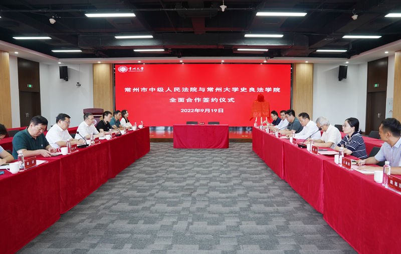 9月19日下午,常州市中級人(rén)民法院(以下簡稱“常州中院”)與常(cháng)州大學史良法學院在西太湖(hú)校區(qū)立言樓舉行全麵戰略合作協議簽約儀式。常州中院黨組書記、院長曹忠明,黨組成員(yuán)、政治部主任張立群及相關部門負責同誌,常州大學黨委常委、紀委書記、派駐監察專員沈新奎,史良法學院名譽(yù)院長曹義孫,史(shǐ)良法學院相關負責(zé)人出席會議。