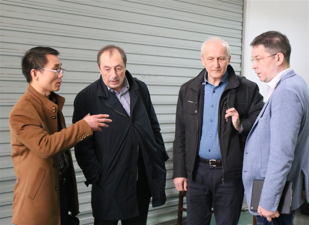 Igor Alexandrov教授(shòu)(右二)參觀材(cái)料科學與工程學院實驗室並與魏偉教授交流