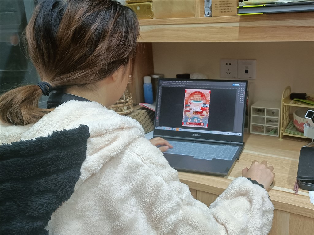 國賽一等獎作品(pǐn)《趣(qù)遊紅址》作者李千慧創作中