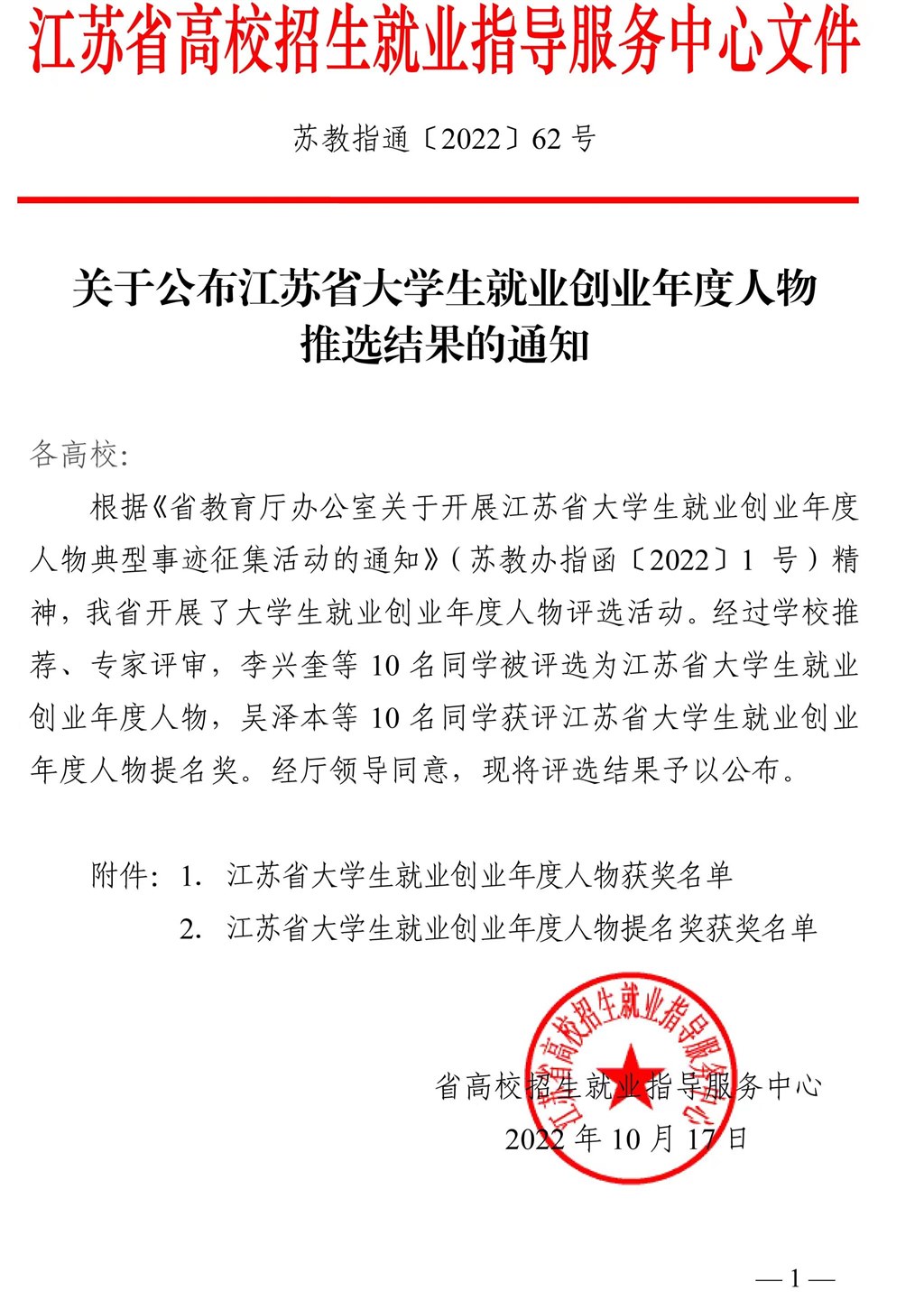 本次評選活動由江蘇省教育廳舉(jǔ)辦,經過(guò)學校推薦,兩輪專家評審,評選出江蘇省大學生(shēng)就業創業年度(dù)人物10名、提(tí)名獎10名,旨(zhǐ)在表彰他們在基層就業、征兵入伍、創新創業等方麵的突出作為。