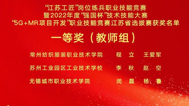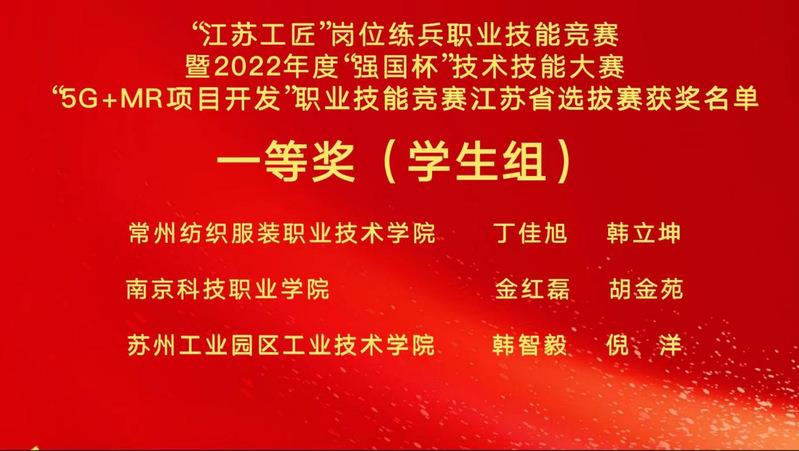 2022年11月15日,由工業信息化部教育考試(shì)中心江蘇省省人力資源社會保障廳指導,江蘇省通信(xìn)學(xué)會主辦,常州紡織服裝職業技術學(xué)院創意學院承辦的江蘇省“燧光杯”5G+MR資源開發職業技能競賽暨2022年度“強國杯(bēi)”技術(shù)技能大賽“5G+MR資(zī)源開(kāi)發”職業技能競賽江蘇省選拔賽落(luò)下帷幕。本賽項旨(zhǐ)在深入貫徹落實習近(jìn)平總書記關於人才工作重要論述,落實中央人才工作(zuò)會議精神,大力培育支(zhī)撐製造強國、文化強國、網絡強國(guó)建設的技術技能人才隊伍,充(chōng)分發揮職業技能競賽對技(jì)能人才培養引領示範作用。創意(yì)學院師(shī)生(shēng)在本次大賽中不(bú)畏強手,奮勇拚搏,勇奪(duó)全(quán)省第一!