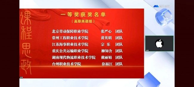 近日,全國高等(děng)學校外(wài)語課程(chéng)思政教學大賽第三階段賽事(國賽)在線上舉行,常(cháng)州工程職業技術學院通識部教師黃英明、婁(lóu)立國、吳玥寧所組成(chéng)的代表隊作為江蘇省4支代表隊之一,從全國(guó)34支(zhī)高(gāo)職高專代表隊中脫穎而出,喜獲高職高專組一等獎。