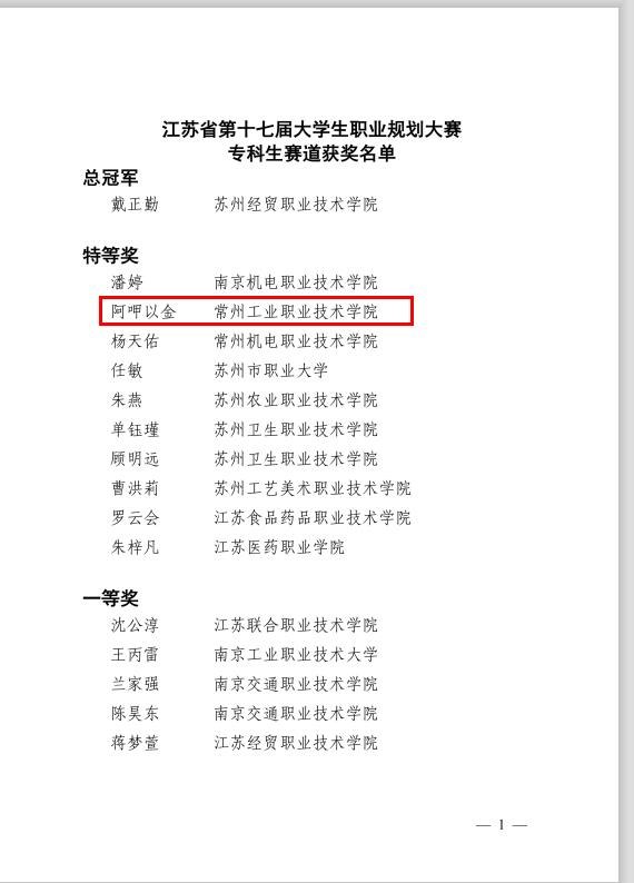 12月8日,由江蘇省教育廳(tīng)主辦(bàn)、江蘇省高校招生就業指導(dǎo)服務中心承辦的“武進人才杯”江蘇省第十七屆大學生職業規劃大賽專科組(zǔ)總決賽在線(xiàn)上落下帷幕。常州工業職業技術學院旅遊與烹飪學院2021級(jí)幼兒發展與健康管理專業學生阿呷以金(jīn)同學的規劃項目《大山裏的小園丁》在輔導員何從娜老師的指導下獲得了省規(guī)劃大賽專科生賽道特等獎,取得了學(xué)校在此項賽事中的最好成績,實現了特(tè)等獎零的(de)突破。現代裝備(bèi)製造學(xué)院2020級數控技術專業學生薑健同學的規劃項(xiàng)目《以技立身 智造未來》在輔導員許濤(tāo)老師的指(zhǐ)導下也獲得了省規(guī)劃大賽專科(kē)生賽道(dào)一等獎的好成績。