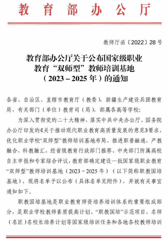 近日,教育部辦公廳印發《關於公布國家級職業教育“雙師型”教師培訓基地(2023-2025年)的通知》,常州工程職業技術學院獲批(pī)國家級職(zhí)業(yè)教育“雙師型”教(jiāo)師培訓基地(化工技(jì)術類)。