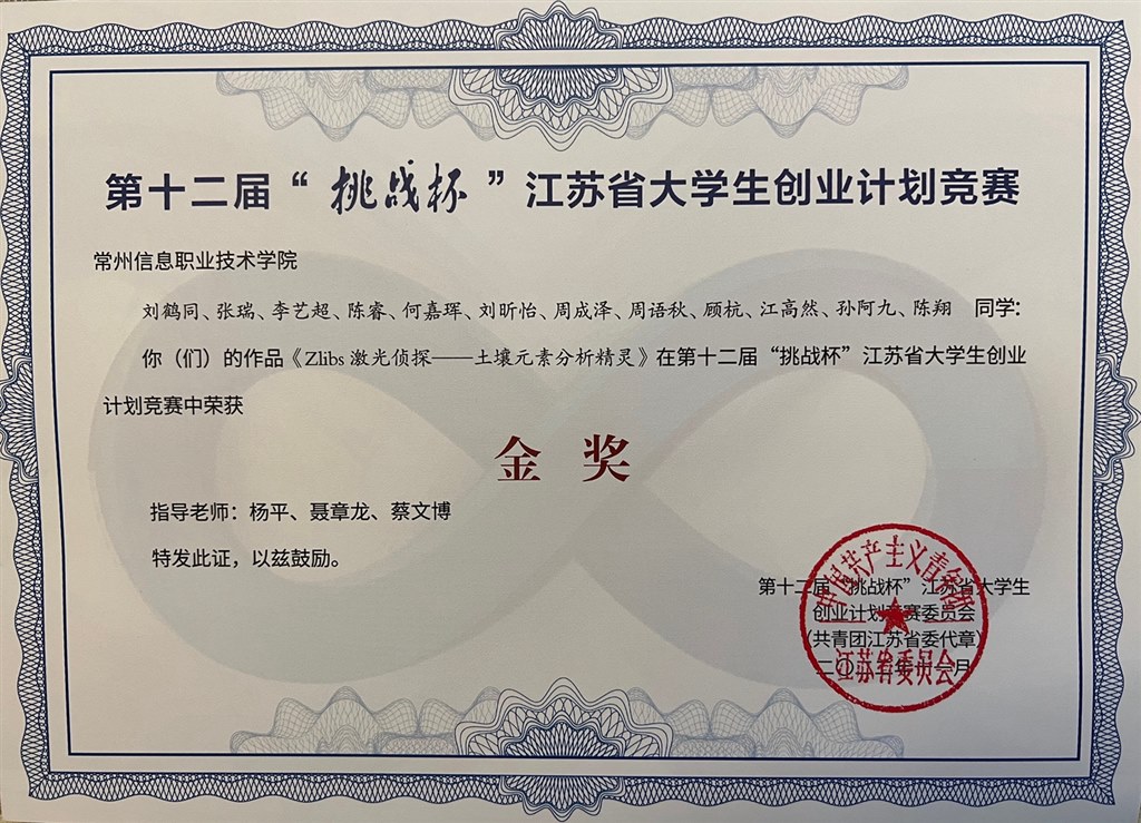 日前,共青團江蘇省委、江(jiāng)蘇省(shěng)教育廳、江(jiāng)蘇(sū)省人(rén)力資源和社會保障廳、江蘇省科學技術協會、江蘇省(shěng)學(xué)生聯合會(huì)聯合發文《關於對第十二屆“挑戰杯”江蘇省大學生創業計劃競賽結果的通報》(團蘇委聯〔2022〕19號),常(cháng)州信息職業技術學院獲“優勝杯(bēi)”,2個項目獲金獎,1個項目獲銅獎,楊平、孫磊厚兩位老師獲“優秀指導教師”稱號。
