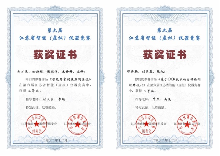 常(cháng)州信息(xī)職業技術學(xué)院獲第六屆(jiè)江蘇(sū)省智能(虛擬)儀器競賽一等獎2項、二等獎3項、三等獎2項