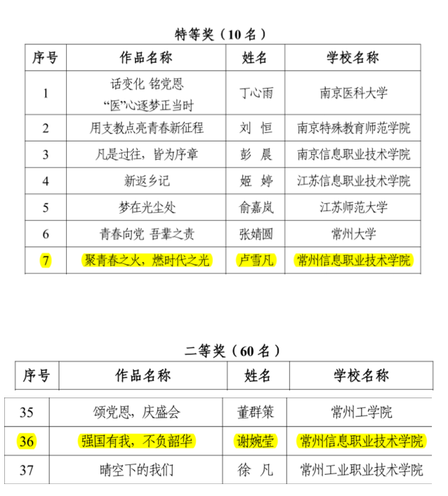 近日,由省委教育工委、省教育廳主辦(bàn)的“奮進新征程,青春勇擔當”全省大學(xué)生征文比賽結果揭曉,常州信(xìn)息職業技術學院獲征文比賽特等獎1項、二等獎1項。