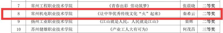 近日,由江蘇省高校網絡思想政(zhèng)治工(gōng)作中心主辦的2022年度江蘇省高校網絡思政“金微課”征集評選活動(dòng)結果公布,常州機電職業技術學院機械工程學院輔導員秦希雲的微課作品《讓中華優秀傳統文化“火”起來》獲高職組二等(děng)獎。