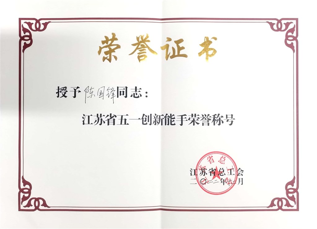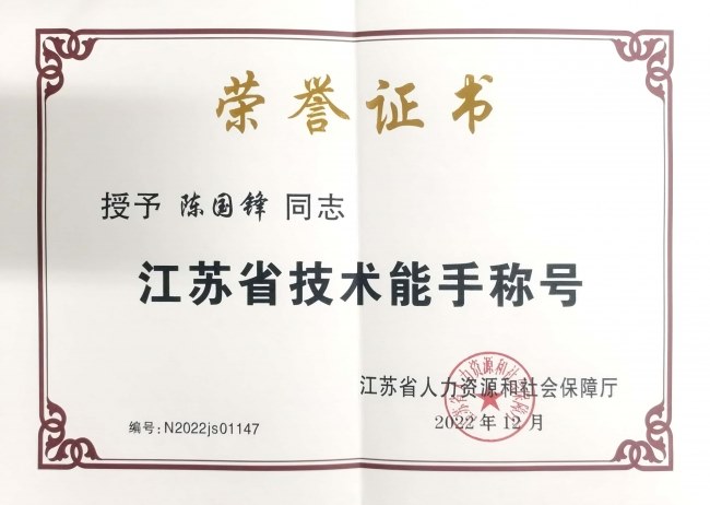 近日,從江蘇省(shěng)人力資源和社會保障廳(tīng)、江蘇省總工會(huì)傳來喜訊,常州工程職業技術(shù)學院設計學院陳國鋒老師被江蘇省人力資源(yuán)和(hé)社會保障廳授予“江蘇省技術能手”榮譽稱號,被江蘇省總工會授予(yǔ)“江蘇省五(wǔ)一創新能手”榮譽稱號。