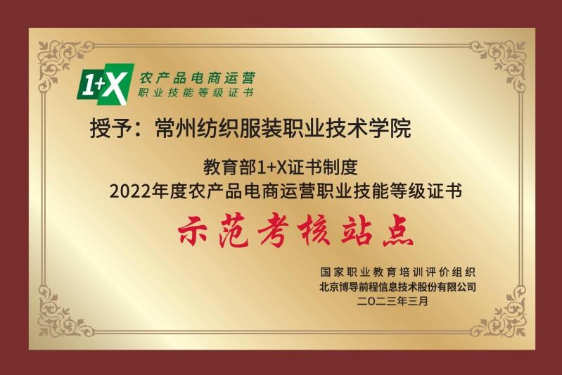 常州紡織服裝職業技術學院被評為教育部“1+X”農(nóng)產品(pǐn)電(diàn)商運營項目 2022年優(yōu)秀試點院校和示範考核(hé)站點
