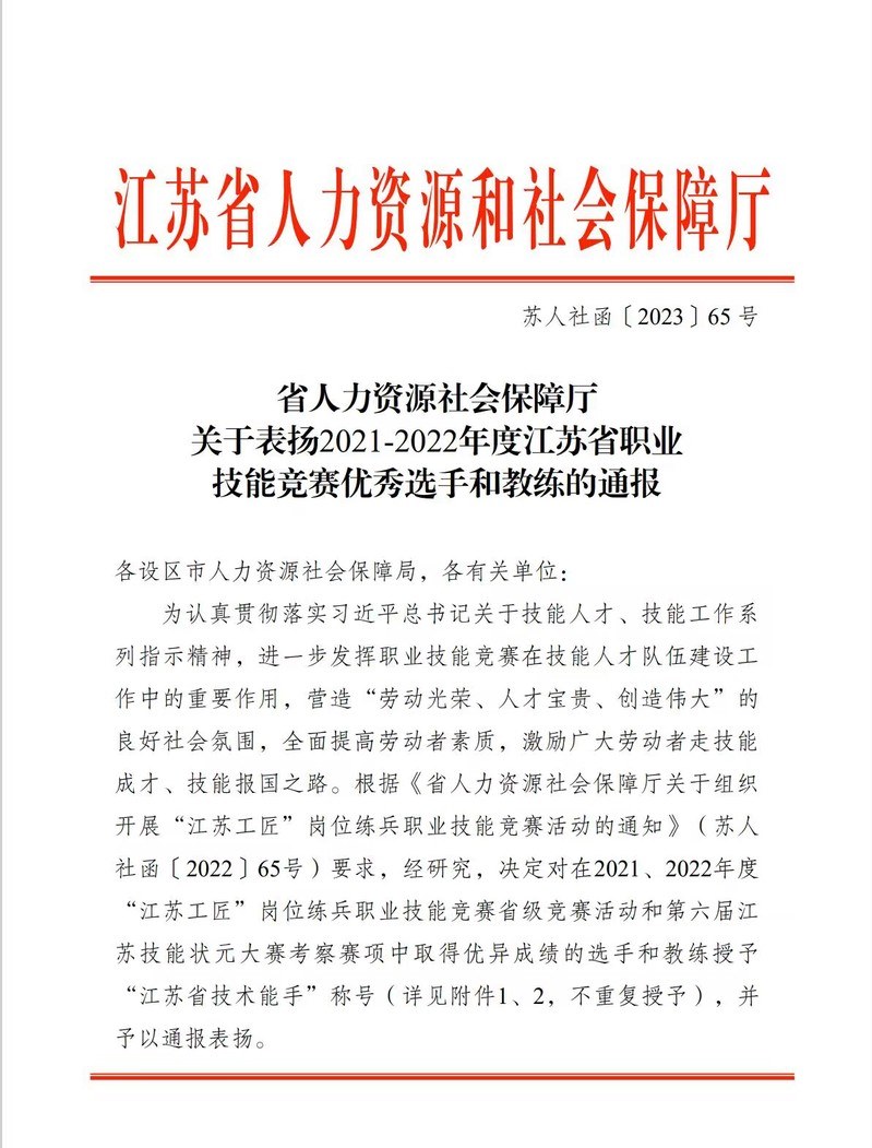 近日,2022年江蘇省(shěng)數字技術職業技能競賽(sài)結果公(gōng)布,常州機電職業(yè)技術學院經濟管理學院王睿等11名教師在競賽中脫穎而出,獲得優異成績,被授予“江蘇省技(jì)術能手”稱號。