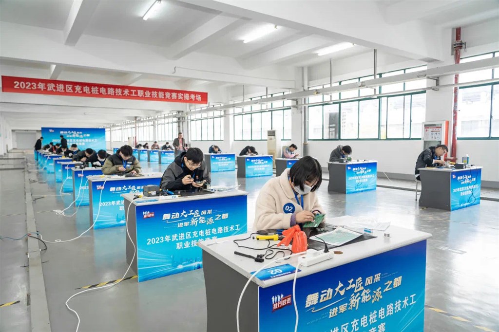 為全(quán)力打造新能源之都建設,著力提(tí)升新能源行業從業人員專業技能水(shuǐ)平(píng),3月31日,由武進區人(rén)社局、武進(jìn)區總工會主辦,常州科教(jiāo)城現代工業中心、江蘇(sū)(武進(jìn))技能人才服務產業園承辦的“舞動大工匠風(fēng)采 進軍新能源之都”——2023年“技行武(wǔ)進”職業技能(néng)競賽在現代工業中心舉行。科教城黨工委委員,管委會副主任、現代工(gōng)業中心主任莊三舵出席開幕式。