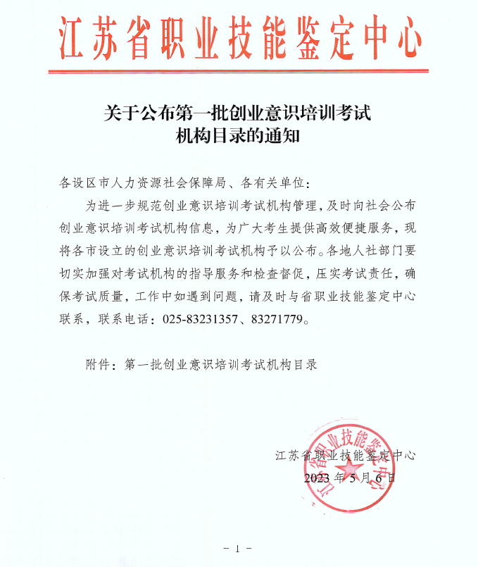 近日,江蘇省職業技能(néng)鑒定中心發布《關於公布第一批創業(yè)意識培訓考試機構目錄的通知》,常州工程職業技術學院獲順利通過審核,獲評江(jiāng)蘇省第一批創業意(yì)識培訓考試定點(diǎn)機構。