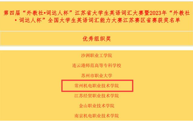 常州(zhōu)機電職業技術學院學生在2023年全國大學生英語詞匯能力大賽中創曆史佳績