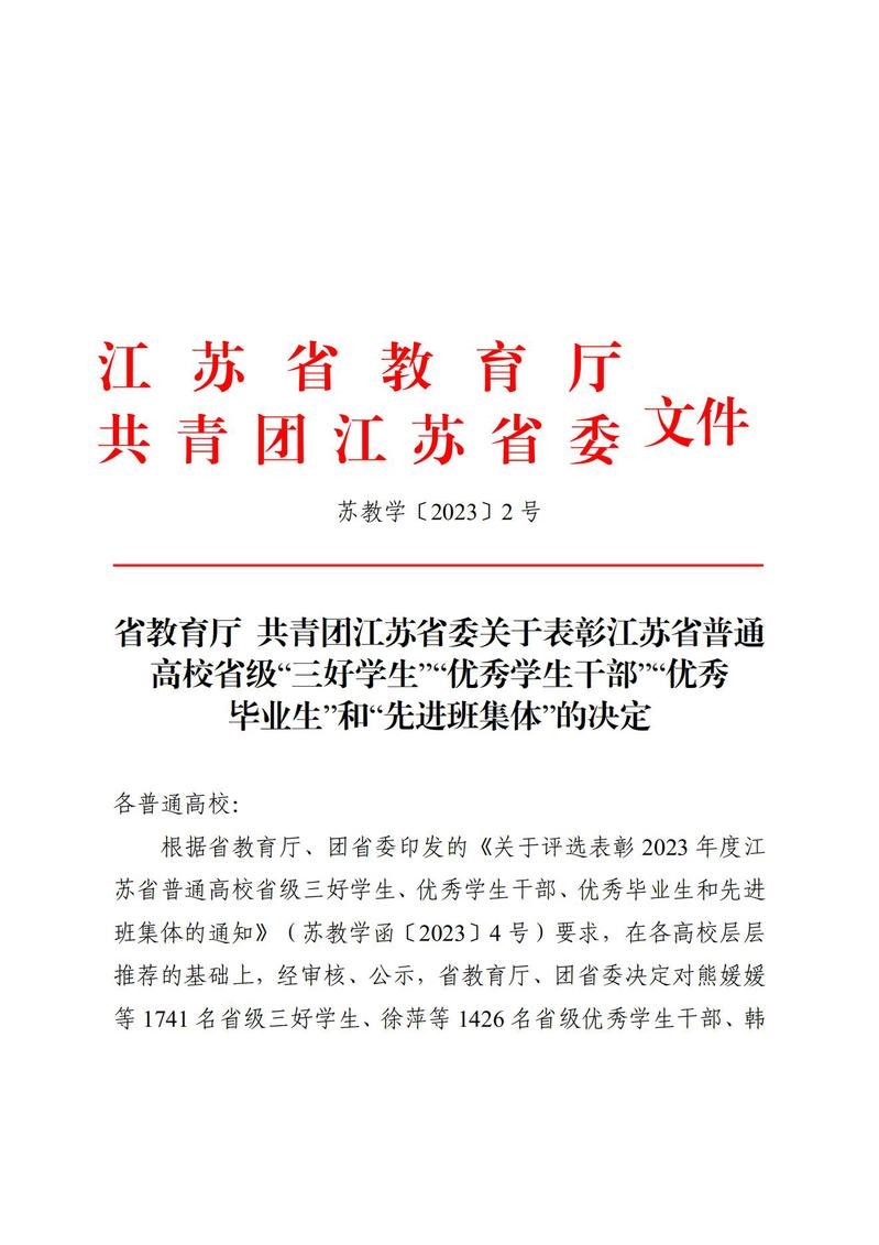 常州(zhōu)工業(yè)職(zhí)業技術學院學子榮獲“江蘇省三好學生”等多(duō)項省級(jí)榮譽稱號