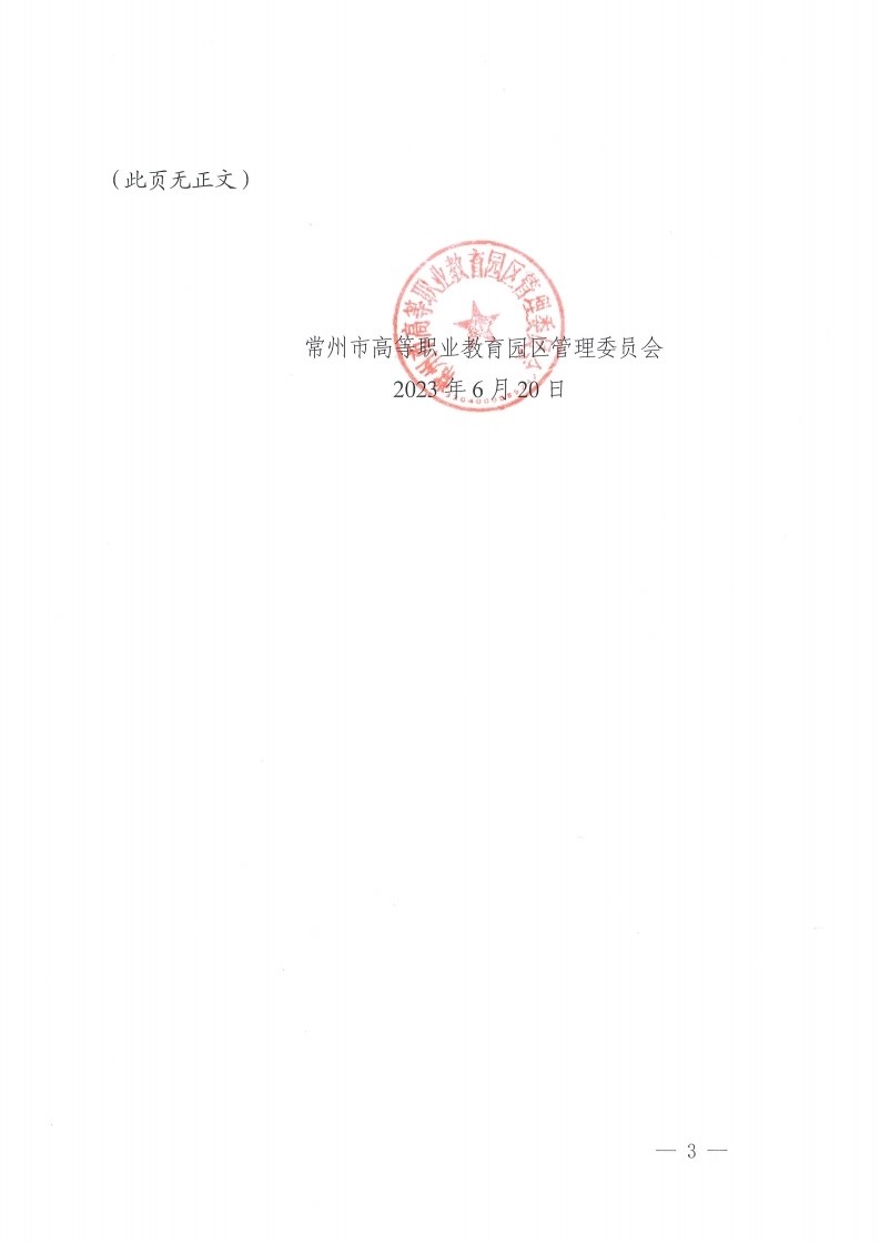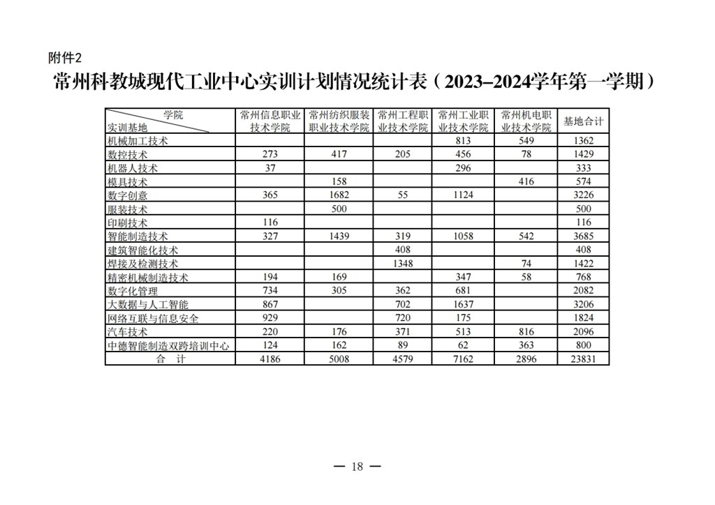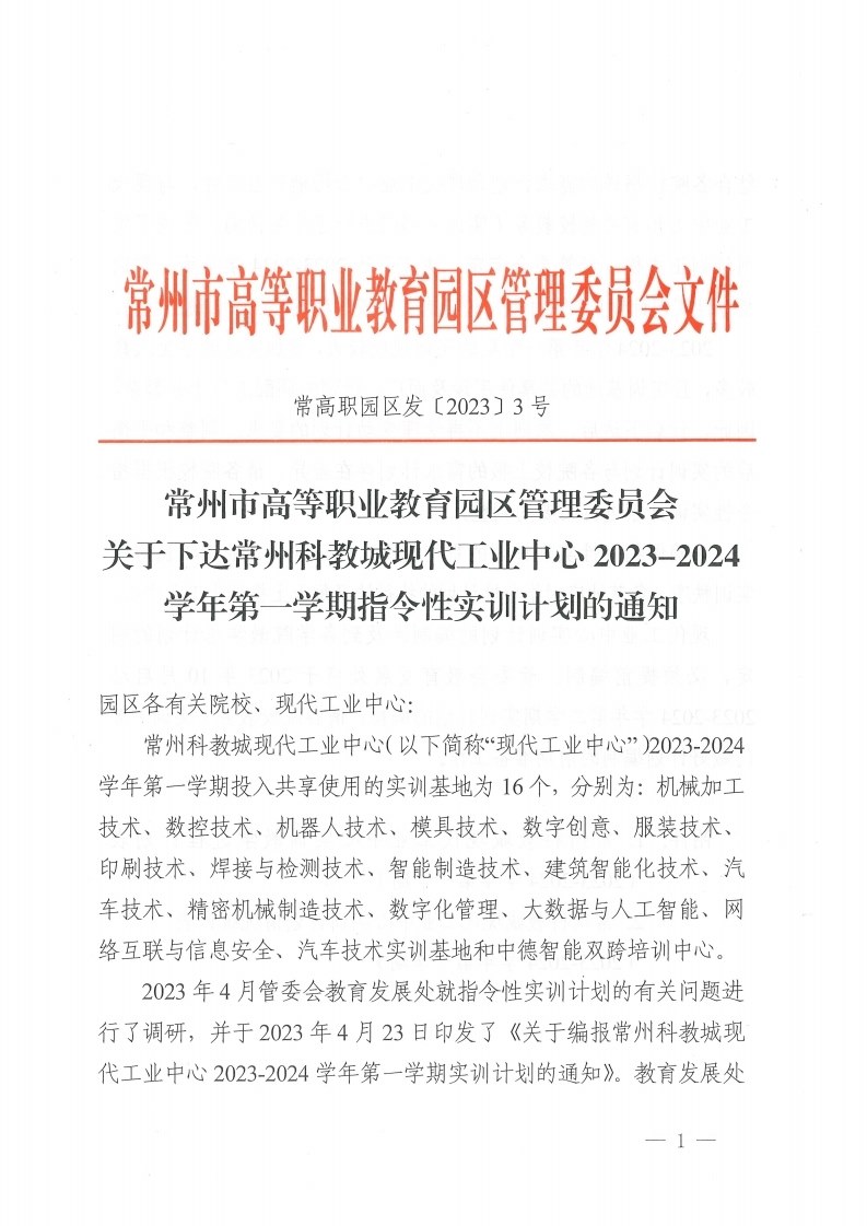 常(cháng)州市(shì)高等職業教育園區管理委員(yuán)會關於下達常州科教(jiāo)城現代工業中心2023-2024學年第(dì)一學期指令性實訓計劃的通知