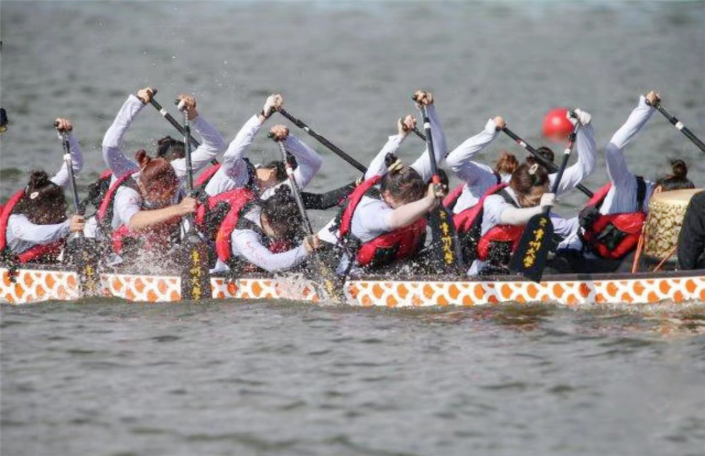 龍舟(zhōu)隊員賽場上奮力拚搏