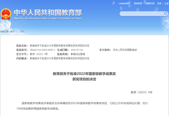 日前,《教育部關於批準2022年國家級教學成果獎獲獎項(xiàng)目的決定》發布。