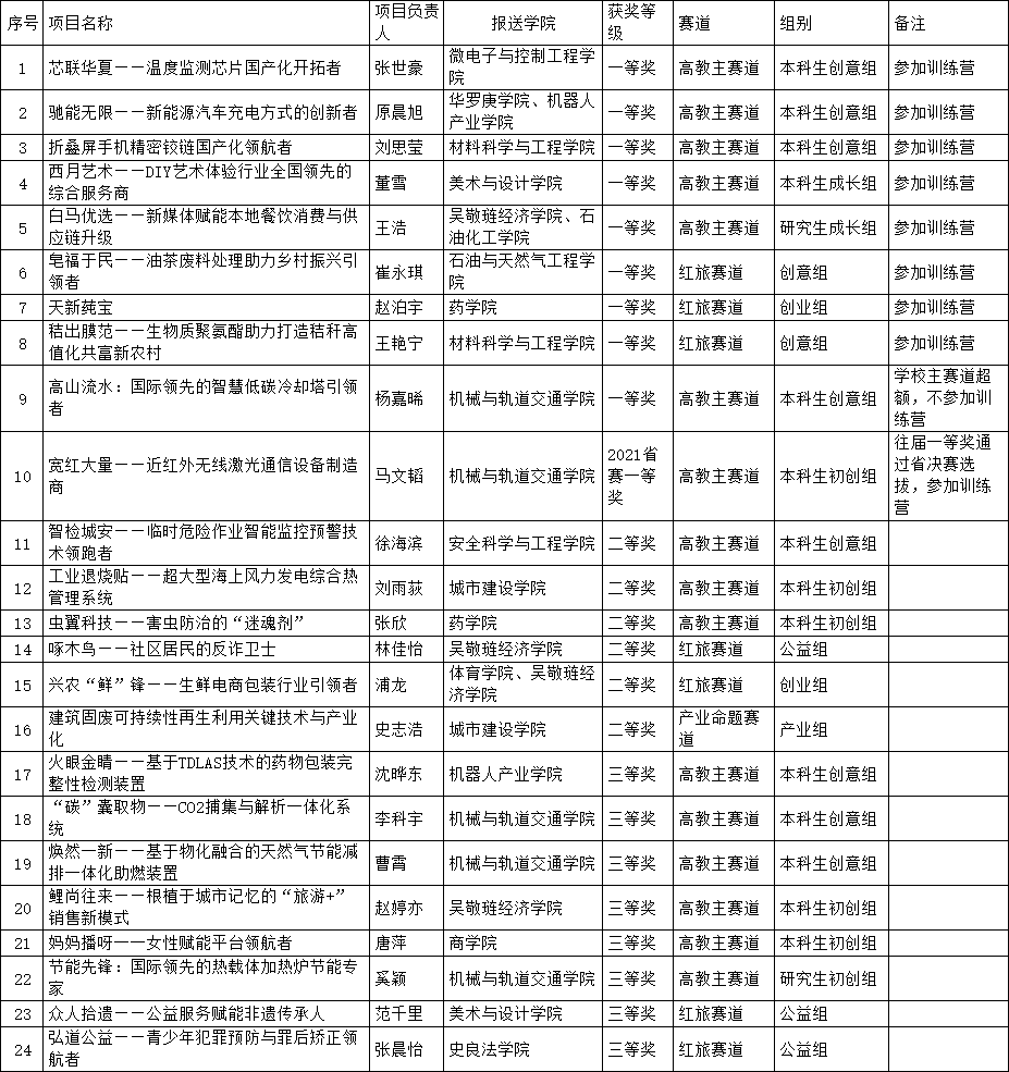 榮獲本屆“互(hù)聯網+”省賽一(yī)等獎(jiǎng)的9個項目分別為微(wēi)電子與控製工程學(xué)院報送的《芯聯(lián)華夏——溫度監測芯片(piàn)國(guó)產化開拓者》,華羅庚(gēng)學院、機(jī)器(qì)人產業學院報送的《馳能無限——新能源汽車充電(diàn)方式的創新者》,材料(liào)科學與工程學院報送的《折疊屏手機(jī)精密鉸鏈國產化領航者》《秸出膜範——生物質聚氨酯助力打造秸稈高值化共富(fù)新農村》,機械與軌道(dào)交通學院報送的《高山流(liú)水:國際領先的智慧低碳冷卻塔引領者》,美術與設(shè)計(jì)學院報送的《西月藝術——DIY藝術體驗(yàn)行業全國領先的綜(zōng)合服務商》,吳敬鏈經濟(jì)學院、石油化工學院報送的《白馬優選——新媒體賦(fù)能本地餐飲消費與供應鏈升級》,石油與(yǔ)天然氣工(gōng)程學院報送的《皂福於民——油茶廢料處理(lǐ)助力鄉村振興引領者》,及(jí)藥學(xué)院報送的《天(tiān)新蓴寶》項目。