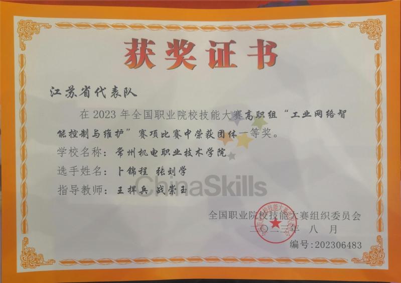 常州機電職業技術(shù)學院獲2023年全國(guó)職業(yè)院校技能大賽首金