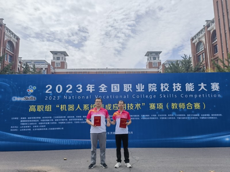 “機器(qì)人(rén)係統集成應用技術”教師賽是教育部今年新設(shè)賽項。職業教(jiāo)育教師參加技能(néng)大賽有利於提高專業水(shuǐ)平和實踐能力,促進職業教育師資隊(duì)伍(wǔ)的更新和提升。獲獎教師陳偉、江(jiāng)海天曾是本校學生,也是技能大賽金牌選(xuǎn)手,後留校任教,成為實踐(jiàn)教學指導教(jiāo)師。兩位老師在學生階(jiē)段,經過專業社團、工(gōng)程師訓(xùn)練營等(děng)技能訓練平(píng)台鍛煉,以選手身份獲得過職業院校技能大(dà)賽全國一等獎(jiǎng)3項、二等獎1項、省賽和行業賽一等獎10餘項,是名副其實的金(jīn)牌選(xuǎn)手。2019年留校任教,他們在教學(xué)和競(jìng)賽方(fāng)麵刻苦鑽研,指導學生參加(jiā)技能大賽獲得國賽一等(děng)獎4項、二等獎1項。本次,他們又以專業教師的身(shēn)份參加全國職業院校技能大賽教師組的比賽並獲得金(jīn)牌,成為了名副其實的“金牌選手”“金牌教練”“金牌教師”三料冠軍。