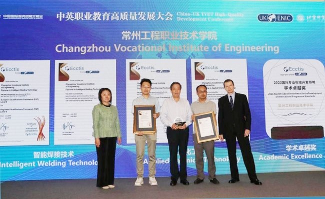 9月2日,在英國國家學曆學位評估中心舉辦的“中英職業教育高質(zhì)量發展大(dà)會”上,常州工程職業技術學院應用化工技術和智(zhì)能焊接技術專業獲得了UK ENIC國際專業標準評估認證證書,正式通過國際專業標(biāo)準評估認證,達到了英國資曆框架(RQF)和歐洲資曆框架(EQF)5級水平。學校的政策與程序符(fú)合國(guó)際質量標準,順利取得國際可比性證書與國際質量標準證書,並榮獲2023國際專業標準開發領域學術卓越(yuè)獎。