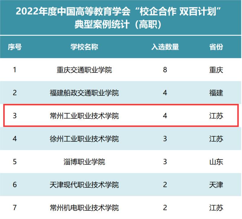 近日,根據《關於啟動中國高等教育學會2022年度“校企合作(zuò) 雙百計劃”工作的通知(zhī)》要求,經資格審核、網絡盲審、線上線(xiàn)下雙走訪(fǎng)、專家(jiā)推薦等環節,常州工業職業技術學院4項校企合作成果入選中國高等教育學會2022年度“校企合(hé)作 雙百計劃”典型案例。
