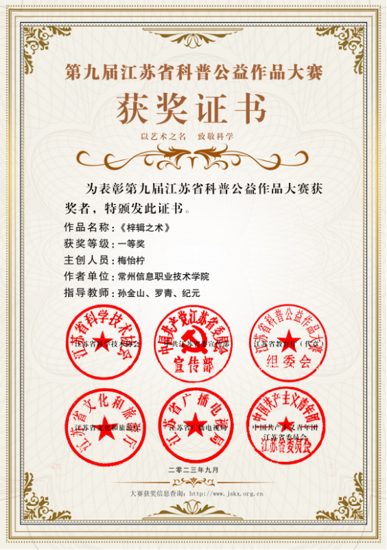 近日,由江蘇省委宣傳部、省科(kē)協、省教育廳(tīng)、省(shěng)文化和旅遊廳、省廣播電視局、團省委主辦(bàn)的第九屆江蘇省科普公益作品大賽獲獎作品揭曉。常州信息(xī)職業(yè)技術學院從來自全(quán)國20餘(yú)省市的8332件作(zuò)品(pǐn)中脫穎而出,一舉摘得一等獎三項,收獲曆史(shǐ)性突破。