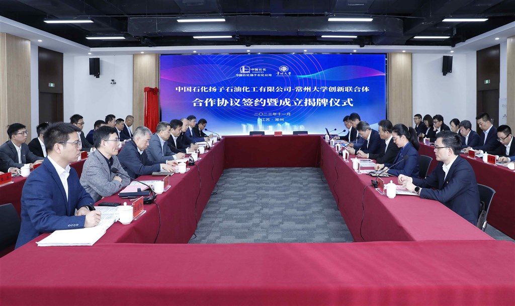 11月6日,中國石化揚子石油化(huà)工有(yǒu)限公司(以下簡稱“揚子石化”)—常州大學創新聯合體合作協議簽約暨成立揭牌儀式在常州召(zhào)開。揚子石(shí)化董事長、黨委書記顧越峰,副總經理邢建良,集團公司高級專家王振新,副總政工師兼黨委組織部(人力資源部)部長(經理)潘培青(qīng),技術部副經理(lǐ)楊斌,研究院院長、黨委書記陳韶輝,總經理辦公室(黨委辦公室)主任陳寶兵,技術部(bù)副(fù)經理(lǐ)郭向前,常州大學原黨委書記陳群,黨委書記徐守坤,黨委副書記、校長陳海群,黨委常(cháng)委、副(fù)校長楊琳,黨(dǎng)委常委、副校長李亞飛,副校長晏成(chéng)林出席會議,常州(zhōu)大學相關部門、學院負責人及有關專家參加會(huì)議。晏成林主持會議。
