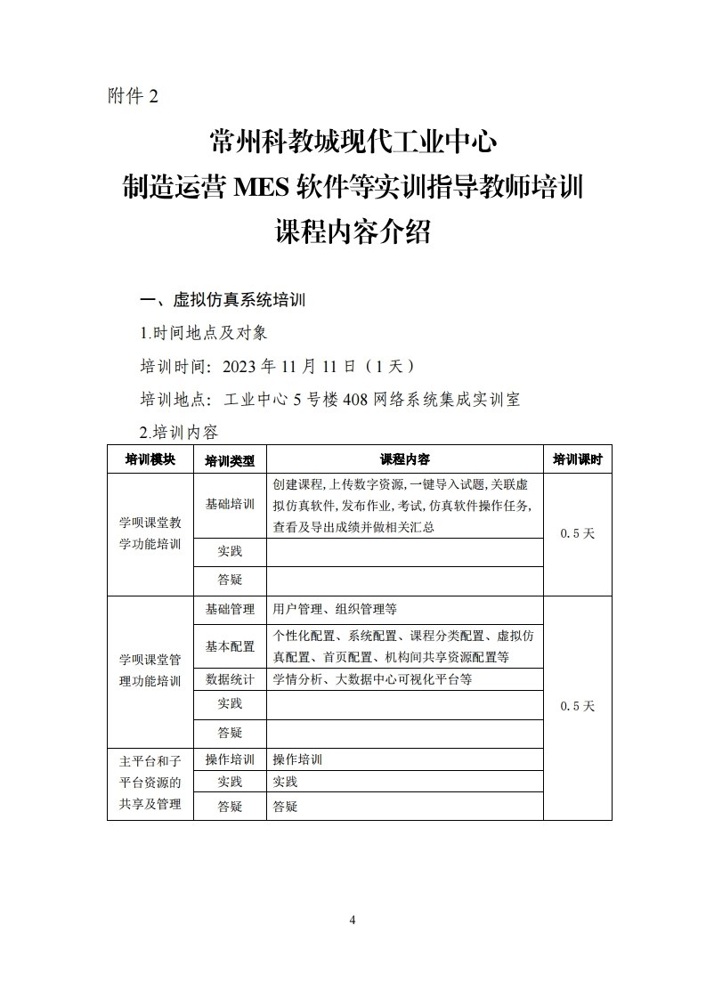 常州科教城現(xiàn)代工業中心關於開展製(zhì)造運營MES軟件等實訓指導教師培訓工作的通知