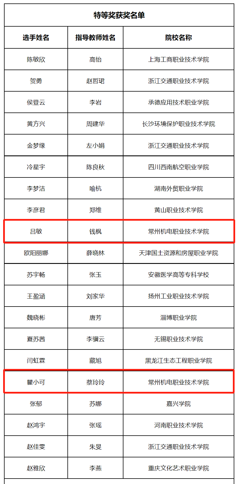 11月14日,由常州機電職業(yè)技術學院通識教育部錢楓(fēng)、蔡玲玲老(lǎo)師指導的2名學(xué)生(shēng)(物流2232班呂敏、創業與經營2231班瞿(qú)小可)分別以全國排名第9、第(dì)16名的好成績雙雙榮獲2023“中國教育電視台·外研社杯”職場英語挑戰賽演講大賽網絡賽特等獎。