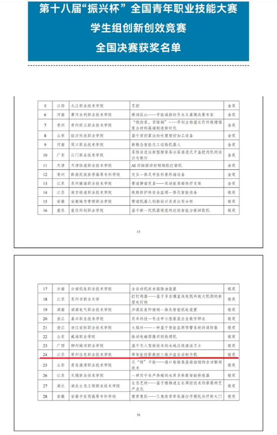 11月(yuè)9日至11日,由共青團中(zhōng)央、人力(lì)資源社會(huì)保障部主辦的第十八屆“振興杯”全國青年職業技能大賽學生組創(chuàng)新創效競賽全國決賽在鄭州舉辦。由常州(zhōu)信息職業技術學院(yuàn)周正(zhèng)元、朱俊老師指(zhǐ)導,周悅、王康、湯興臣、張函等同學研發的“帶智能投影數控三維沙盤自動製作機”參賽項目,在與241個入(rù)圍項目的激烈角逐中脫穎而出(chū),榮獲(huò)高職創意設計組銀獎。