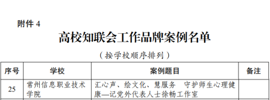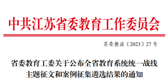 近日,省委教育工委公(gōng)布了全省(shěng)教育係統統一戰線“貫徹二十大(dà)精神同心共築教育(yù)夢”主題(tí)教育活動主題(tí)征文和案例征集遴選結果(蘇委教函〔2023〕27號),常州信息(xī)職業技術學院多項作品(pǐn)獲得佳績,張正撰寫的《構建“1+N”統戰矩陣體(tǐ)係(xì)完善大統戰工作格局》被評(píng)為“學思踐悟·高校統戰部長說”優秀主題征文,入選“二十佳優秀征文”。軟件與(yǔ)大數(shù)據學院黨(dǎng)總支選送的《匯聚校園星火 點亮職教明燈》(主人公:眭碧霞,民盟盟員,武進區(qū)武進區第十五屆政協委員)被評(píng)為“建功立業新時代”黨外人士典型事跡(jì),入選“三十佳優秀事跡”。《匯心聲、繪文化(huà)、慧服務 守護師生心理健(jiàn)康——記黨外代表人士徐暢工作(zuò)室》被評為“高校知聯會工作品牌案例”。獲獎數(shù)量和質量均位列全省高職院校前列。