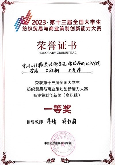 近日,第十三屆全國大(dà)學生紡織貿易與商業策劃創新能力大賽在東華大學落下(xià)帷幕,常州工程職業技術學院檢測學院蔣婧老師、經管學(xué)院(yuàn)蔣恒蔚老師(shī)指導的(de)學生團隊在學校領導的大力支持下,憑借紮實的技能和過硬的個人素質,取得了(le)優異成績。