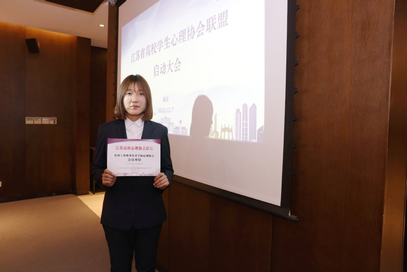 12月7日晚,“江蘇省高校學生心理協會聯盟”成立大會在南京大學國際會議中心舉辦,學校心理協會社長(zhǎng)崔佳(jiā)萌同學參加(jiā)了大會。本(běn)次聯盟成(chéng)立大會主要包括(kuò)第一批(pī)會員單位名單公布、第一批(pī)會員單(dān)位聘書頒發、選舉產生第一屆聯盟主席團成員以及討論(lùn)聯盟宗旨與目標四個環節。在會議上(shàng),崔佳萌詳細介紹了學校(xiào)心理協會的基本情況、組織架構(gòu)、特色(sè)活動和未來(lái)規劃,收到了南京大學心理協會(huì)負責人頒(bān)發(fā)的第一批會(huì)員單位聘書。