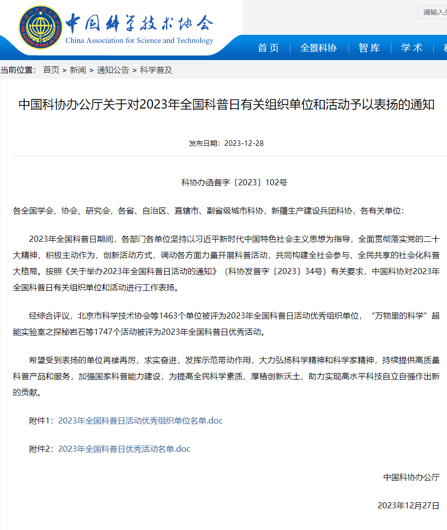 近(jìn)日,中國科(kē)協對2023年全國科普日有關組織單位和活動進行工作表揚。常州信息職業技術學院參與主辦的“2023年全國科普日活(huó)動—“追星科學家·擘畫中國夢”科學家(精神)進校園係列行動”,參與協辦的“我有一個院士夢”——2023年常(cháng)州市“全國科普日”主場活動獲評優秀活動。