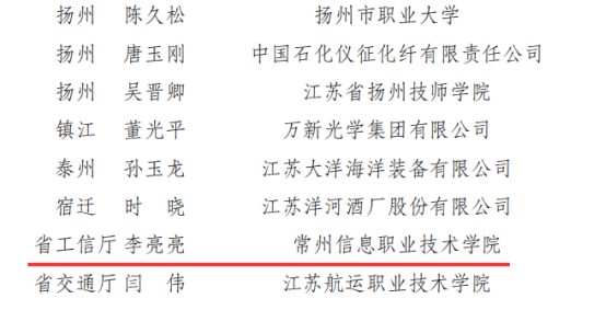 常州(zhōu)信息職業技術學院團隊榮(róng)獲“江蘇省技能大(dà)師工作室”、郭偉老師榮獲“江蘇工匠(jiàng)”