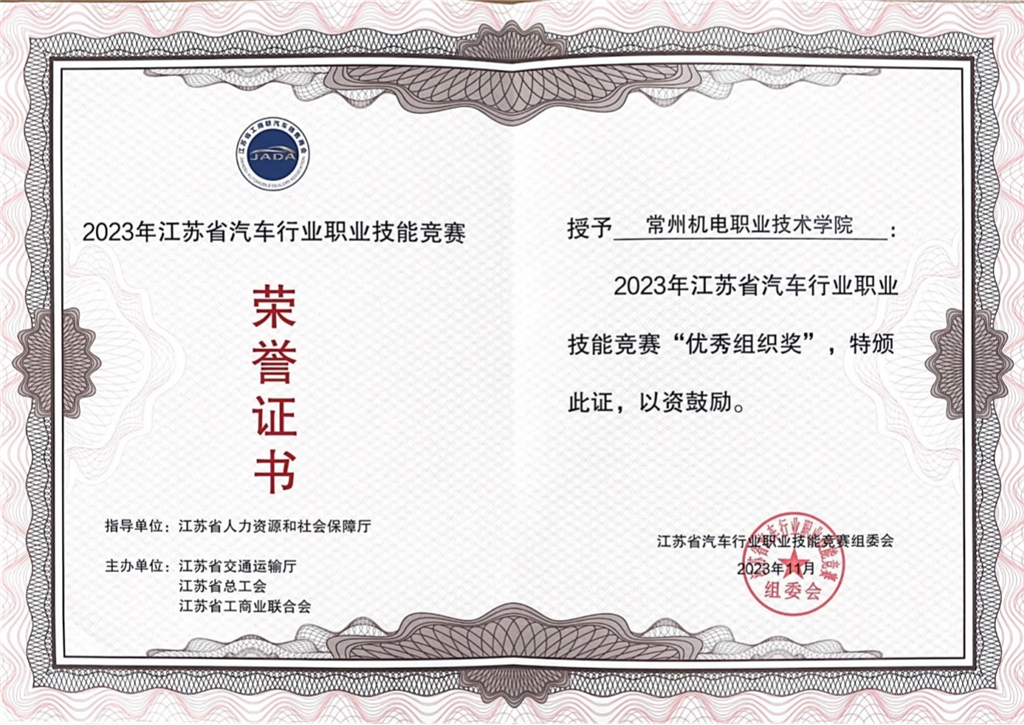 1月11日下午,2024年度江蘇汽車發展大會在南京召開,會上對2023年江蘇省汽車行(háng)業職(zhí)業技能比賽進行了表彰。常州機電職業技術(shù)學院交通工程學院(yuàn)學生王文琦(指導教師:嶽興蓮)獲二手車直播銷售賽項和汽車維修(新能源)賽項學生組一等獎;交通工程學院教師熊金鳳獲二手車直播銷售(shòu)賽項職工(gōng)組一等獎,學生張浩宇(指(zhǐ)導教師:熊金鳳)獲學生組三等獎。學校獲2023江蘇省汽車行業職業技能競賽團體優勝獎、優(yōu)秀組織獎。
