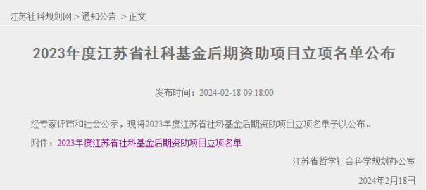 江蘇省社科基(jī)金後期資助項目是省社科(kē)基金項目主要類(lèi)別之一,與其他類別的省社科基金項目具有同(tóng)等學術地位,重點支持文史哲等基礎學科、社會科學以及冷門絕學的基礎性研究,鼓勵學者(zhě)根據學(xué)術興趣和學術積累運(yùn)用新理論新方法進行跨學科跨領域研究,以資助學術專著為主;要求申報成果應具有(yǒu)原創性或開(kāi)拓性,達到(dào)本(běn)學科領域先進水平。2023年共立項79個,其中僅有兩(liǎng)所職業院校有成果獲批立項,我校是在常高職院校中唯(wéi)一獲批立(lì)項的單位。